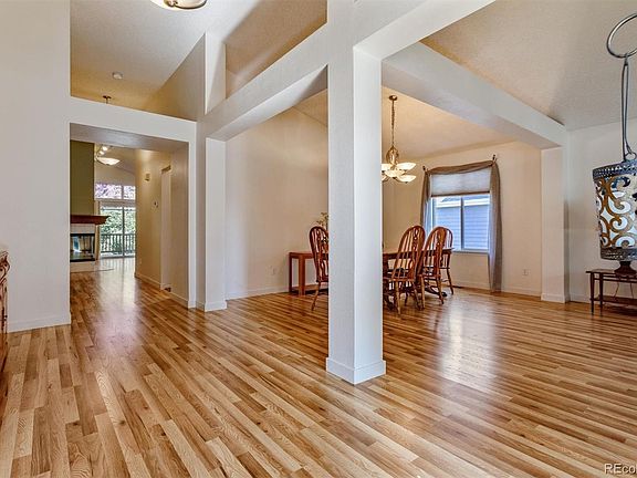 This exceptional ranch style home offers a comfortable lifestyle and is located on a private and quiet culdesac. Boasting high ceilings, architectural details and new wood-like flooring except in the kitchen, laundry and secondary bath, this home is move in ready. Some newer interior paint makes this home light and bright and features formal and informal living and dining. The large kitchen showcases tons of cabinetry and counterspace with room for a breakfast table. Open from the kitchen is the Family Room enhanced with a two way fireplace, built in shelving, a recessed TV area and accesses the 33' x 12' wood deck. The Owner's Suite is complete with new carpet, paint and a large 5pc bath and oversize walk-in closet. Two additional bedrooms and bath are located separately from the Owner's Suite allowing for privacy for family members or guests. The main floor laundry includes the washer and dryer. Storage is abundant in the unfinished walkout basement and is ready for your vision to finish if so desired. You will enjoy outdoor living in the treed and well landscaped backyard. Highlands Ranch is an amazing community with exceptional amenities including 3 recreation centers, pools, tennis courts, miles and miles of walk/hike/bike trails, retail shopping, restaurants and great access to all major highways. WELCOME HOME!!