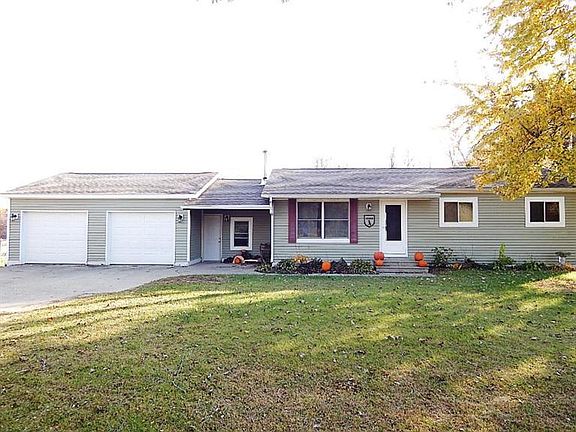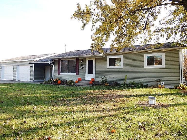 Great country ranch has many updates. Newer roof, windows, siding, furnace, central air, garage doors, exterior doors, totally remodeled bath, and newly remodeled breezeway with putting green. Partially finished basement has 4th bedroom/rec room, extra 20 x 24 garage, and above ground pool. All for $89,900.