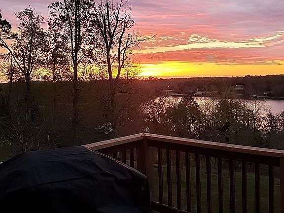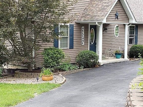 1 1/2 stories. Cathedral ceilings with 300 plus sq ft loft. custom cabinets, granite countertops Beautiful faux stone wood burning two sided fireplace with granite hearth and custom oak mantel. Large kitchen island. Stainless steel appliances all included. Convection/Regular oven. Great room has hardwired surround sound. Engery speakers and Denon receiver and DVD included. Has wireless security system. Home has 2x6 construction with all double hung insulated low-e windows and doors. Two extra large bedrooms upstairs. Master bedroom has French doors leading into screen porch. Large walk in closet and large bathroom complete with Jacuzzi jetted tub. Main floor laundry room complete with built in ironing board and linen closet. Has utility sink and comes with brand new Whirpool high efficiency top load washer and dryer. 184* sw. ft basement and approx. 1000 sq ft basement is finished. Has den. Third bathroom and extra large bedroom. Sliding doors lead to patio. Back of basement has 848 ft of storage and workspace. Home has water softener. Roof is 5 yrs old and has upgraded premium architecture asphalt shingles. Two car garage is finished and comes with window a/c. There is a dog door in garage leading to covered dog pen..roof matches house. Beautiful landscaping and awesome views of the lake. Has asphalt drive thru driveway. Security gates to the subdivision are being installed.