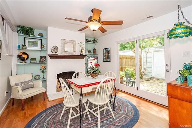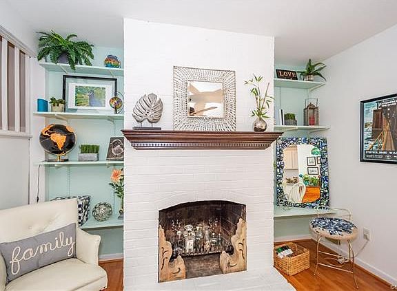 Nice quiet area to enjoy and relax when at home. Lots of light, wood floors throughout, kitchen (all appliances convey)with separate dining area open to the island and cooking area with brick wood burning fireplace and shelving on each side. Glass french doors that open to the walk out brick patio and (new) wood fence less than 1 year old. Spacious bright and light living room with bay window and access to the open center staircase. The large master bedroom has a walk in closet and access to private his and hers baths with shower/tub between both water closets and vanities. Other access is from the hall. It's like having 2 baths! Other 2 bedrooms have floor to ceiling closets with additional shelving for great storage. All new vinyl windows about 6 months old, Washer and dryer convey. No known defects but fireplace, flue, and chimney convey "as is". Seller had the fireplace cleaned and new chimney cap put on when they moved in but never used the fireplace. Central vac also conveys "as is", seller has never had the attachments to use it but previous owner said it works. This one won't last long! Great for a first time home buyer!