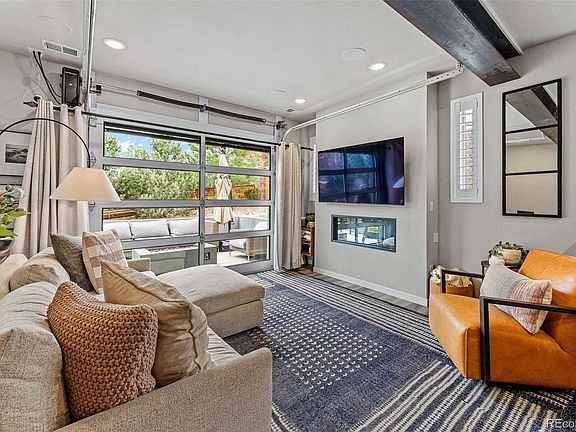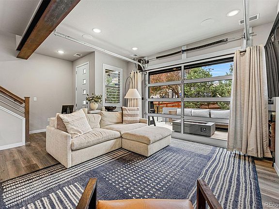 Although the home is listed as a two bed, the bonus room has a door and is currently being used as an enclosed office. This premium end unit features modern, sustainable living at Bear Creek Terrace with an abundance of natural sunlight and an innovative, insulated all-glass roll-up garage window in the great room that opens to a spacious enclosed patio, merging indoor and outdoor living spaces. This unit also includes an electric screen for optimal privacy while enjoying the fresh air with the garage door open. The Patio is west facing and the home receives an abundance of afternoon natural sunlight. The gourmet open kitchen is equipped with white quartz countertops and high-quality appliances. Additional standout features include an 8-foot entry door with four glass panels, an upgraded designer lighting package with LED bulbs, exposed beams, an oversized two-car garage, and a custom electric fireplace in the living room. This home is just steps away from local restaurants, a brewery, bike trails, and minutes from the iconic Red Rocks Amphitheater, offering both convenience and recreational opportunities.