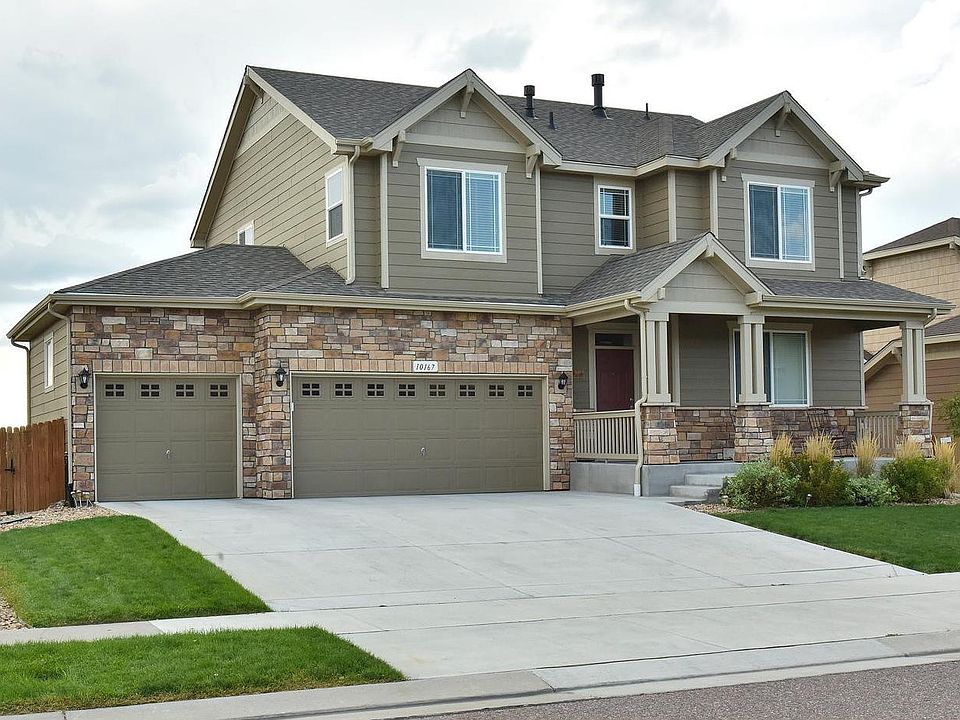 Outstanding setting in Buckley Ranch backing to the Second Creek Open Space! Stellar mountain views, sunsets & a tremendous sense of privacy! Best price in town for setting! This traditional 2 story floorplan offers all bedrooms on the upper level w/ amazing owners retreat & master suite. Upper level laundry room is conveniently located near bedrooms! Main level boasts 2-sided fireplace, spacious family room, ample dining area & gourmet kitchen w/ granite, nice cabinets, large island w/ eat in breakfast area & glass slider to extended back deck w/ shade sail cover & stairs to large fenced in yard! Walkout basement offers great potential for guest suite, rec room & private lower level patio to enjoy this setting! Dream garage is generously oversize & will easily hold 4 cars + extended truck length, workshop & storage to your hearts content. Excellent schools, great family friendly community with lots of open space with easy of access to airport & recreation! Come see for yourself!