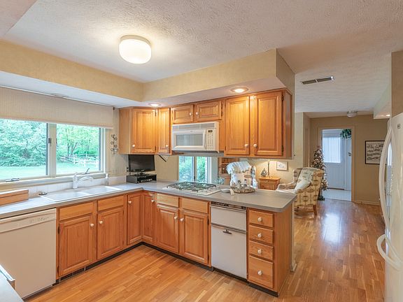 Playtime awaits with this gorgeous, 3/4 acre manicured yard with wooded views. Discover 3,353 square feet with a cathedral ceiling entry & circular floor plan. Enjoy the spacious Living room, Dining room & this fantastic cathedral ceiling Family room w skylights. Appreciate the hardwood plank floors, built in shelving, brick hearth, gas log fireplace & a fantastic screened patio with deck & gorgeous wooded views! The open Kitchen has a breakfast bar with dinette, craft area & access to the laundry, powder room + an over sized 24x22 garage & storage. The HUGE 18x16 Owner Suite has an organized, walk-in closet, large bath: dual sink vanity, walk-in shower & tub. The upper 2 guest beds have spacious closets & Bath access. Enjoy the 26x18 Recreation with wet bar, Bed 4, study/storage area & utility room. Benefit: $10,000 credit: Granite, egress, or closing cost credit + Home Warranty! You'll love the community with 4 parks, minutes to entertainment, freeway & shopping!
