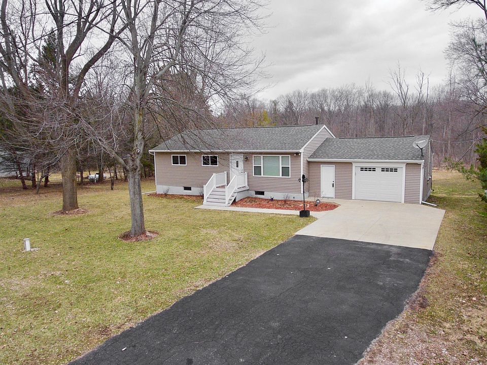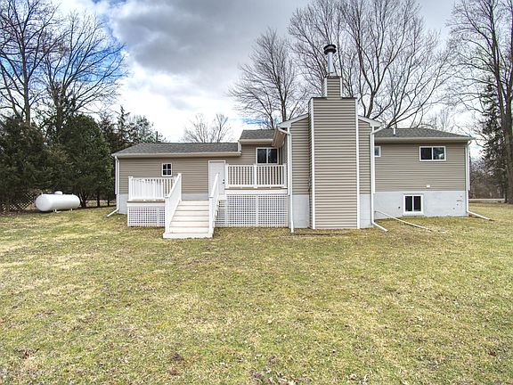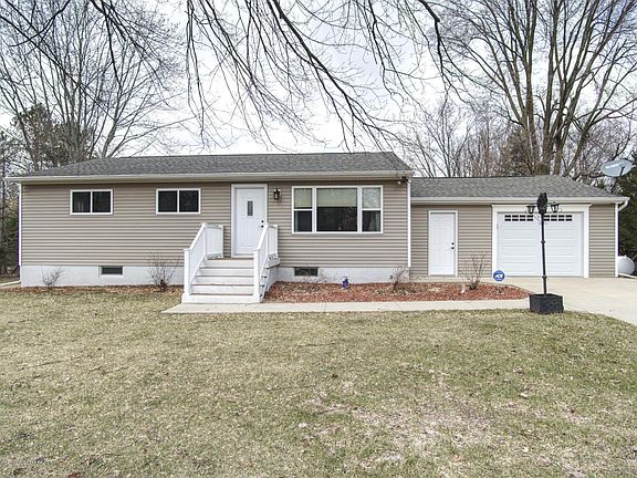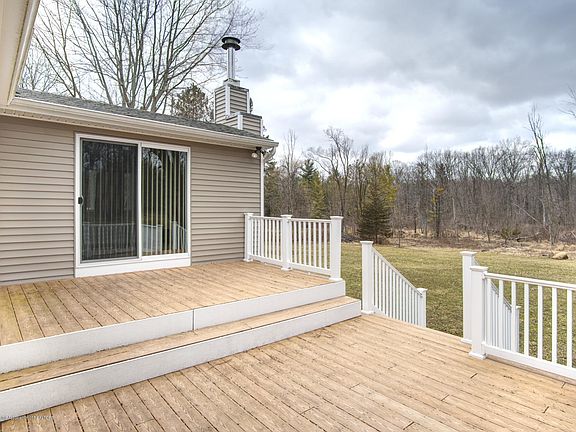 Beautifully updated family home on a private paved road just outside of the city. Newer furnace, central air and water heater as well as newer roof, siding and windows. Custom kitchen with above cabinet lighting open to beautiful dining room that overlooks the composite deck outside with apple and pear trees near by. Hardwood floors throughout with custom tiled shower and double sinks in the bathroom. Full walkout basement with egress window ready to be finished includes Mohre Soft Water Systemto remove minerals from the water. Washer and Dryer are reserved.