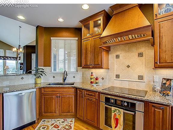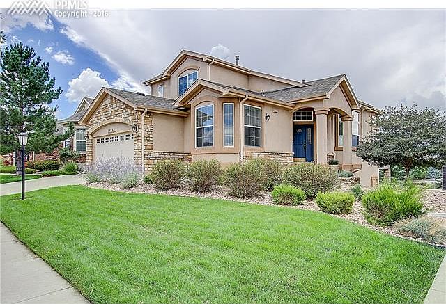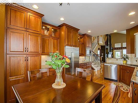 This beautiful patio home offers low maintenance living at its best! With all of the lawn and pruning of plants taken care of by the community, all of the homes are wonderfully maintained and have perfectly manicured landscaping. Upon arriving at the home, you will notice the picture perfect curb appeal of the home and the grandeur of the front entrance. Walking in, you are greeted with a feeling of spaciousness, with 2 story vaulted ceilings across the great room. The main level has a nicely flowing open floor plan with hardwood floors and numerous large windows showcasing Pikes Peak views. The gourmet kitchen has been beautifully remodeled to include custom cabinetry, quartz countertops and high-end Bosch appliances/Jenn Air Induction cooktop. There is a spacious eating nook in the kitchen, as well as a dining area in the great room. The hardwood floors continue in the great room, which walks out to the back deck and has a gas fireplace with built-ins. Even though this is a two story home, the main level contains the master suite, which features a big bay window, private walk-out to the 24x9 back deck, and has an enormous walk-in closet and an attached 5 piece bathroom with newer tile. The upper level has two spacious bedrooms, each with their own bathroom! As a bonus, the basement of this home has been finished and offers an amazing entertainment space, with a wet bar with quartz countertops and hickory cabinetry, and a built in tv. The 24 x 9 back deck and lower patio have amazing unobstructed views of the front range The lower patio has been expanded to provide lots of outdoor entertaining space, and features four solar shades. This home is located in a fantastic part of town, with great district 20 schools and lots of shopping nearby.