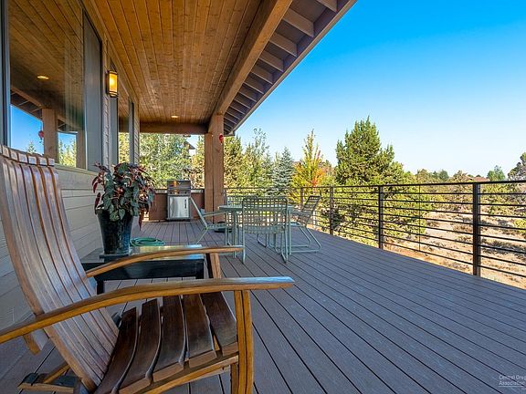 Northwest Contemporary with views of Smith Rock & Gray Butte. One level custom home features great room plan with open concept kitchen. White oak floors, solid surface counters, floor to ceiling cabinetry and built-in buffet with open shelving. Vaulted ceilings, gas fireplace with built-in bookshelves. Expansive covered deck & low maintenance landscape. Finished bonus room, & extra storage room under home. Three car tandem garage with shop area and sink. Enjoy all Eagle Crest Amenities.