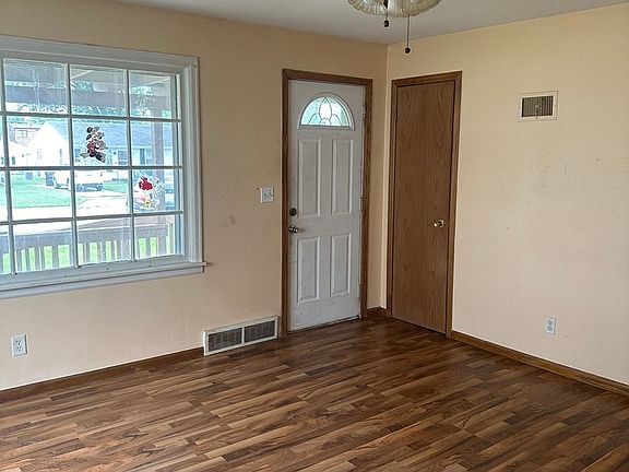Ranch home with living room and large main floor family room with wood stove. Full basement. Metal roof. Fenced backyard. Handicap accessible ramp. Does need some work.