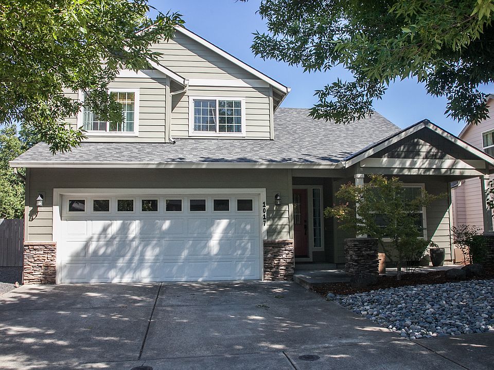 Discover this charming, newer two-story home nestled off May St. on Hood River's desirable west side. This inviting residence is ideally situated close to schools, a swimming pool, and scenic walking trails. Step inside to find a spacious open-plan living area where the kitchen and dining spaces seamlessly flow together. The main room features a cozy gas fireplace with an elegant mantel, perfect for a TV and gathering around. A sliding glass door opens to a generous backyard, offering ample space for outdoor relaxation and play. Convenience is key with a half bath and laundry room conveniently located on the main level. The laundry room, accessible from the double garage, includes a practical area for coats and shoes, as well as a deep sink for added functionality. Upstairs, you'll find all the bedrooms, including a large main suite with a walk-in closet and serene views overlooking the backyard. Two additional bedrooms offer ample closet space and comfort. The hall bath features a versatile shower/tub combo. The front yard is beautifully low-maintenance, while the fenced backyard showcases lush grass, mature trees, and thoughtfully designed plant borders. The side yard is generously sized, perfect for accommodating a small travel trailer or boat. This home offers a perfect blend of comfort, convenience, and style in a fantastic location. 1 year Lease Tenant pays all utilities Yard care by owner Pet friendly, Size and Breed restrictions apply. Pet Deposit $500 per pet Pet Rent $25 mo per pet. Renters insurance required Absolutely no smoking.