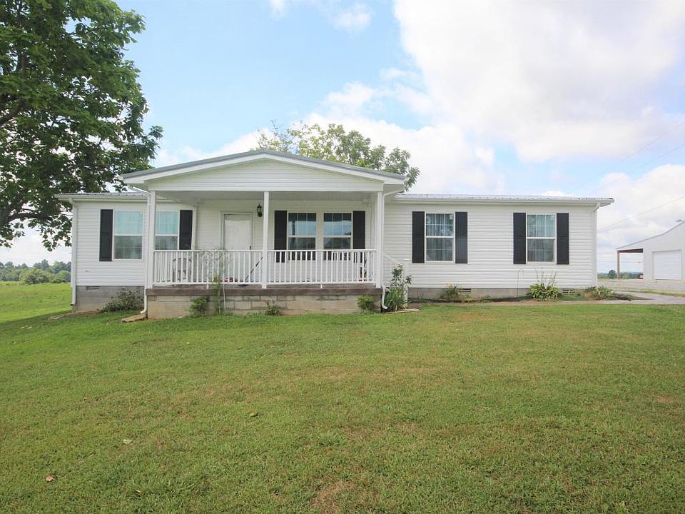 Here's an amazing opportunity to own your own mini farm while still being only minutes from Leitchfield amenities! This 14+/- acre property is fenced, includes a pond, a barn with water, electric, stalls and a hay loft. The 30X40 detached garage was built in 2017 and has concrete floors, gas heat, and a kitchenette! Your 3 bed, 2 bath manufactured home was built in 2014 and sports an open floor plan with hardwood laminate throughout, large closets, a kitchen bar, tons of cabinet space and all the appliances remain. Relax and enjoy beautiful views of the country from your covered front porch! This one is a must see!