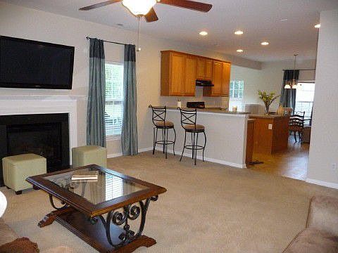 Beautiful 2 story home on private wooded lot Kitchen with 42 inch cabinets island and pantry Large great room with gas logs fireplace Sunroom off kitchen openfloor plan Master with dual vanities tray ceiling garden tub All bedrooms have walk in closets Home warranty 2 car garage loft area with closet Lots of community amenities Clean well maintained No pets or smoke