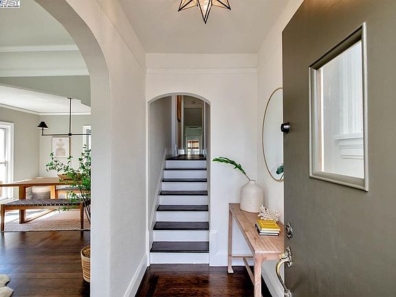 Built in 1926 and updated/remodeled in 2024, this charming Craftsman home is located just blocks to Trader Joe's and Otis Elementary school, and less than 1 mile to Lincoln Middle School, Lincoln + Krusi parks and Encinal Market! Filled with plenty of vintage charm, this split-level home offers 3 bedrooms, 1.5 bathrooms, formal living and dining rooms, an eat-in kitchen and an attached garage. Many beautifully preserved original features include a gorgeous brick/stone fireplace, coved ceilings, oak floors, and bay windows. Recent updates include new interior paint, refinished floors, new light fixtures, a brand new kitchen and an updated bathroom. The large primary bedroom is located on the main level for backyard views, convenience and privacy. The huge, sunny backyard has brick + paver patios, a lawn, refreshed landscaping and an RV/boat pad. With a sought-after East End location that gives easy access to top schools, parks, Alameda beach, the San Francisco Ferry and everything downtown Park Street has to offer, this home has it all!