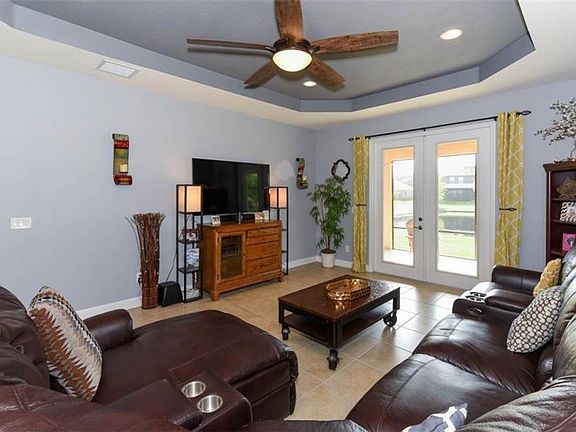 - Interior Features: Ceiling Fans(s), Master Bedroom Downstairs, Split Bedroom, Walk-In Closet(s), Open Floorplan, Solid Wood Cabinets, Eating Space In Kitchen, Kitchen/Family Room Combo, Stone Counters, Tray Ceiling(s)