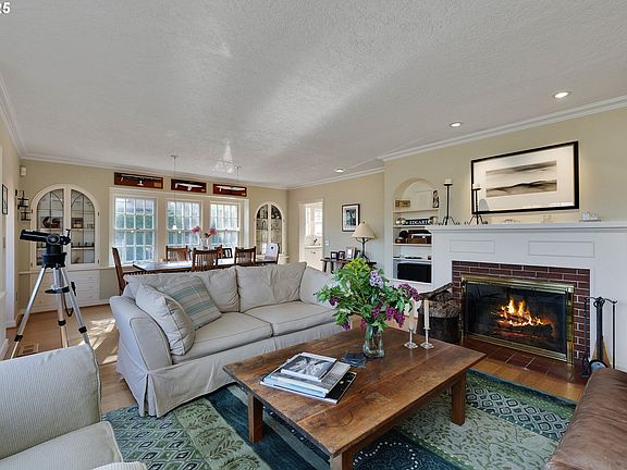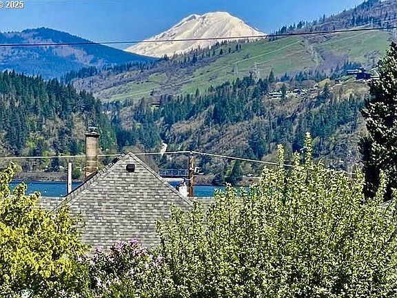 Beautifully maintained, charming 1314+/- sqft bungalow & 576 sqft gorgeous, guest studio above the double car garage: total 1890sqft. The immaculately maintained yard features mature trees, lush grass, a relaxing private patio & mature plantings! Nice peeks of the Columbia River & Mt. Adams are just the bonus! This charming bungalow has original oak floors, a classic wood burning fireplace in the living room & a pretty, extra-large dining area with built ins & lead glass features. The windows are original wood & operational & add a lot of charm & the well-made storms are classically built! The kitchen features a classic wolf range for the chef of the family & adjacent pot rack! The bathroom is centrally located between the two main bedrooms & features a generous walk-in shower & lovely skylight! The two generous bedrooms flank the bathroom & both have hardwood floors & pretty views. The 3rd bedroom or office has a built-in desk & cherry entertainment center (Bob Dill construction) all included. (optional use: 3rd bedroom). Out the back door & you have a very private covered south facing deck, a pretty patio for outdoor entertaining & a grassy yard for pets & kids or the green thumb of the family. With an exterior entry the basement is large, well-lit and an awesome place for toys or perhaps a workshop: it houses the heating system, a gas furnace & the laundry. The adjacent detached, double car garage is rare in downtown Hood River! Upstairs, you will find a beautifully built & designed vaulted studio, ideal for guests or a home office. It includes a mini kitchen, ac, a gas fireplace, a vaulted ceiling, a private bath & a lovely view deck! The owner constructed guest quarters in compliance with ADU requirements; check with city planning if that is your desire. The over sized parcel of.20 acres in downtown Hood River is rare; like living in your own park. This property is unique & it is a once in a lifetime opportunity in Hood River. Make an appt & check it out!