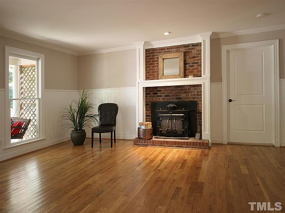Renovated 4 bedroom, 3-1/2 bath home close to Cary's Bond Park and Greenways. Wrap-around porch. Site-finished hardwoods. New carpet. New interior paint. Huge kitchen with Bosch dishwasher, tile backsplash--open to large dining room. Living room has masonry fireplace with wood stove insert. 1st floor master has vaulted ceiling, WI closet, custom bath. 2nd level has the original master, plus 2 add'l bedrooms and 2 full baths. Large multi-level deck. Separate building has workshop with finished room above.