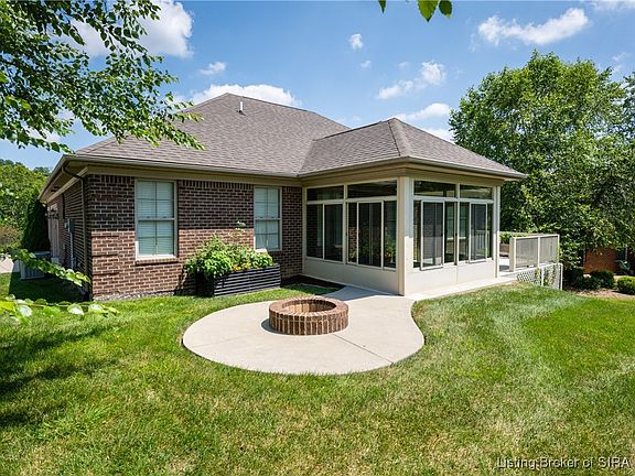 This well-maintained home in the heart of Floyds Knobs features an inviting open layout with a spacious living area with fireplace and built-in bookcases, wood floors, an updated kitchen with a new gas range, center island and walk-in pantry. Enjoy your morning coffee in the light-filled sunroom or host gatherings around the custom outdoor firepit in the backyard. The finished walkout basement offers fresh new carpet, ample living space, with a large 4th bedroom with walk-in closet. The primary suite includes a private bath with jetted tub and separate shower and walk-in closet, while additional bedrooms offer flexibility for guests or home office needs. Spacious side load 3 car garage! Located in a quiet, established neighborhood close to top-rated schools, shopping, and dining.
