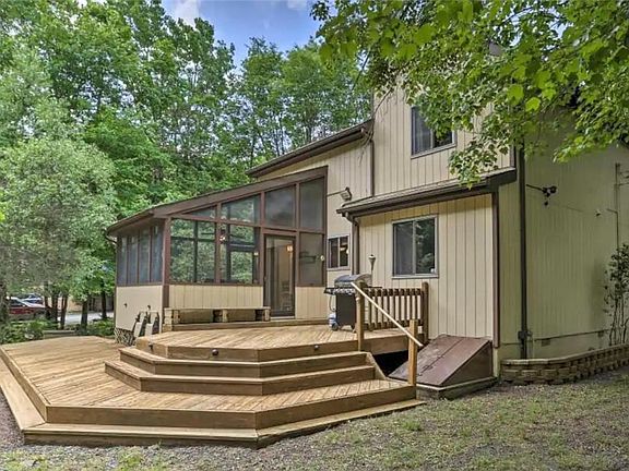 ***Accepting back up offers only*** This updated Contemporary home is a serene retreat! Enjoy the large back deck, firepit & screened-in porch! Over 1,800 sf of space for entertaining, the open main level boasts a cozy living room with fireplace, large dining area & modern kitchen w/ top appliances. Oversized windows, natural sunlight and a backdrop of rich foliage provide privacy. The Loft area is the perfect indoor entertainment space featuring a pool/ping pong table! This home boasts 3 bedrooms and 2 full baths. Primary bedroom w/ en-suite complete w/ whirlpool tub & enjoy the starry night sky through the large skylight above! Walking distance to the lake and your own space at the docks with 2 kayaks included! Located in amenity-filled STR friendly Emerald Lakes, close tomajorhwy & Pocono attractions. Current active STR.
