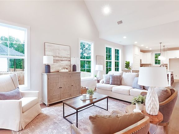 Welcome to the Harper plan-3 bed 2 bath w/ 2-car Garage in Valley, AL. by Holland Homes! This plan incorporates functionality w/ comfort at 1,425 square ft. The entry way opens up into a foyer leading into open concept living! Kitchen, living, and dining areas create a warm and inviting space for family and friends. The kitchen features a Large Island, Soft Close Cabinets & Drawers, and Whirlpool appliances. The kitchen flows into the living area featuring floor to ceiling windows, a Vaulted Ceiling & access to the covered back porch. The primary suite sits at the back of the home and features an en-suite bathroom with a Large Walk-In Closet, tub/shower, and a single vanity sink. Bedrooms 2 and 3 are found at the front of the home, alongside a shared full bathroom. Just off of the kitchen is the laundry room, and entry into the front, double-car garage.