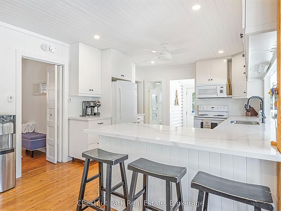 This gem ticks all the boxes! Waters edge living with sunsets on Lake Muskoka. Charming three plus two bedroom fully winterized lake home mere minutes to Bala on Lake Muskoka. Turn key offering that shows pride of ownership. Open concept kitchen/dining & living area. Expansive outdoor living space with 15 x 30 entertaining deck. Extensive perennial gardens and landscaping. Great privacy. Sand cove and deeper water off the dock nestled in a quiet bay. Opportunity for expansion. Income potential with existing summer renters if so desired. This prize offering won't last!