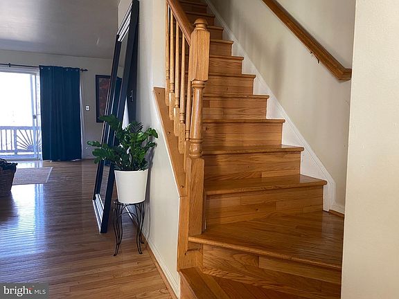 Convenient and excellent location! Great end-unit Bowie townhome that backs to trees, close to major highways and shopping. 3 bedroom, 2 full baths and 2 half baths. Beautiful hardwood staircase and hardwood floors throughout the main level. Cute kitchen with granite countertops, SS appliances, breakfast nook, bay window and bar area. Half bath on main level and second half bath in the basement. Spacious master bedroom with vaulted ceiling and double doors leading to master bath with large soaking tub. Two more generous sized bedrooms on the upper level. The basement has a bonus room, great rec area and sliding glass door that leads to fenced in backyard. Great view from the deck! So much potential here!
