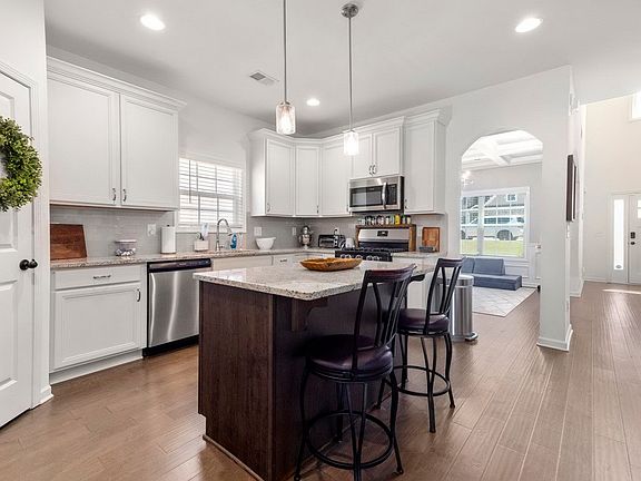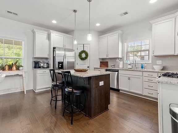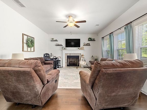 This beautiful home boasts of open living space in the living room and kitchen. The eat in kitchen and living space lead outside to a covered porch with a fireplace and fenced in backyard. The home has beautiful shiplap throughout the home and custom wood shelves have been added in the walk in pantry that give ample storage from the floor to the ceiling. The primary bedroom is LARGE with 2 walk-in closets, a sitting space and a large primary bathroom with 2 vanities.