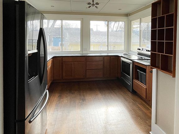 An updated house that is partially furnished. Hardwood floors. Two upstairs bedrooms on the main level. One additional bedroom downstairs (carpeted), with one egress and one ground-level window. There are also windows in the downstairs hallway. The lower level has a bathroom with a shower. The kitchen area has an open design with large windows. Appliances are new within the last 3 years, the washer and dryer are on the main level by the kitchen. The house has forced-air heating. Detached two-car garage and on-street parking, there are no problems with on-street parking availability or times cars have to be moved. No HOA, nice neighborhood, close to walking trails, and not far from downtown. Renters are responsible for utilities. Two small pets (no dogs) are allowed, with a pet fee. No smoking. On-street parking is available.