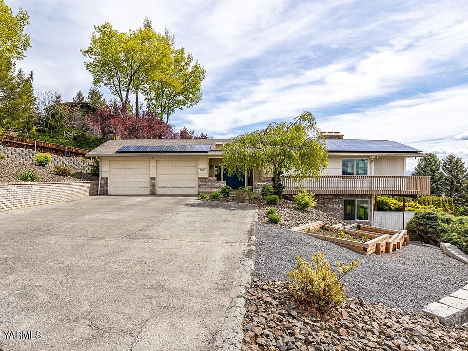 This stunning home is a must-see. Built in 1973, this ranch-style home is the definition of ''good bones'', with thoughtful updates and an unbeatable location. It boasts 3572 sq.ft. of living space, including a spacious and sunshine-filled walk-out basement. Featuring five bedrooms and three baths, two fireplaces, laundry hook-ups on both floors, drive-through two-car garage, and a gorgeous private backyard, perched in a quiet hilltop neighborhood. Quick and easy access to amenities, downtown, West Valley, Terrace Heights, Union Gap, freeway access, the YMCA Aquatic Center, parks, and the Yakima Greenway. Solar panels installed in 2016 take full advantage of Yakima's 300+ days of sun and keep energy bills at next-to-nothing. The wrap-around deck beckons you to enjoy the beauty of the Yakima Valley in every season, with sweeping views from Mt. Adams to downtown and beyond.