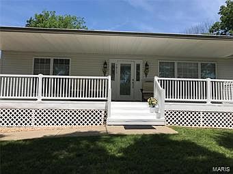 Spacious vinyl covered porch welcomes you to this beautiful energy efficient ranch home situated in Fond Du Lac Lake Development. There are only minimal steps to enter the home through the garage or back patio door. The home invites you into an Open Floor plan with soaring 12' vaulted ceilings and removable gas fireplace. Split floor plan boasts Master suite with walk-in closet, linen closet, double sink, whirlpool tub and separate shower. Two other bedrooms share a full bath/shower combo. The large laundry room off the garage houses the ADT alarm system. Beam central vac system adds easy cleaning. Custom Levelor or Bali honeycomb blinds cover the energy efficient windows. Finished basement includes ample space with full bath and kitchenette. The no step, walk-out basement is ideal for a possible future bedroom or in-law suite. Almost an acre lot with lots of shade trees and Fond Du Lac Lake privileges. Approx 5 mins to Gravois Bluffs or approx 10 mins to st Clair hospital, or hwy 270