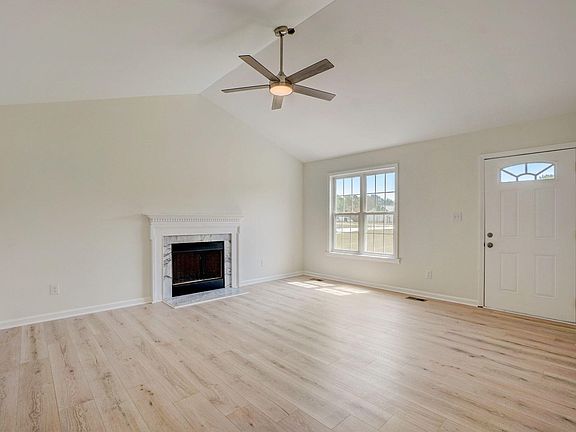 Beautifully renovated ranch home on almost 1 acre homesite in quiet culdesac neighborhood. New roof, vinyl siding, LVP floors, custom kitchen cabinets, quartz countertops, stainless steel appliances, new bathroom vanities & toilets, light fixtures, vapor barrier, and fresh paint. Living room with fireplace. Eat-in kitchen has bay window. Primary suite with private bath w/dual vanity and tub/shower. Deck overlooking flat backyard & wooded buffer. Extended driveway. No HOA or city taxes!! Convenient to 40 & 540 and shopping & dining.