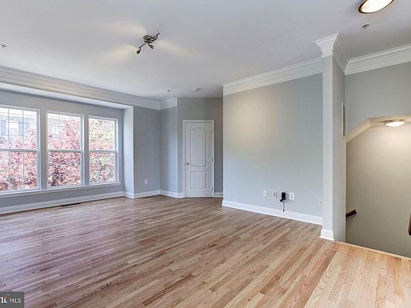 Peaceful view! This sunny stone-front townhome overlooks a landscaped courtyard for a zen retreat you will love to call home. Freshly painted, this open concept floor plan has high ceilings, crown molding and pristine hardwood floors. A light-filled kitchen has a wall of windows, tall cabinets, a pantry, new microwave, and opens to a large low-maintenance composite deck for additional outdoor living space. The upper level has 3 bedrooms with vaulted ceilings, 2 baths, and a convenient laundry room. The private driveway off the alley leads to an attached two car garage. Situated around the corner from one of two neighborhood pools you'll love the quiet location. The low HOA fee in the coveted King Farm neighborhood also has multiple parks, community events, a village center with shopping, dining, Safeway, banks, a shuttle to the Shady Grove metro station and more! Don't miss this wonderful new home, it won't last.