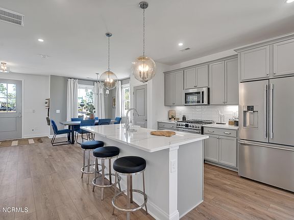 This home is just a short walking distance to the new dog park! All upgraded design selections are included in the price! The Haywood is the quintessential 3 bedroom 2 and a half bath home. The Haywood features a owner's suite tucked away upstairs, which gives the main living spaces on the first floor an exceptionally expansive and open feel. This home lives larger than it's square footage. You'll enjoy ample privacy from your family room with an ideal location at the rear of the home with easy access from your back entryway. An open concept kitchen rests between your living and dining rooms, allowing for connection with loved ones plus easy access to the heart of your home from all living areas on the main floor. ESTIMATED COMPLETION DATE: Early Summer 2024! Riverlights is a new home community surrounded by the coast and Cape Fear River, where nature is part your everyday routine. With easy access to the Cape Fear River, the intercoastal waterways, a family-friendly pool, and a 38-acre lake, you can kayak, paddleboard or stroll along the community dock any time of day. Enjoy the three-mile loop around the lake and scenic nature trails that weave throughout Riverlights. Conveniently located minutes to Historic downtown Wilmington, beaches, restaurants and shopping the location of Riverlights is unbeatable. Photos are from a different completed Haywood home.