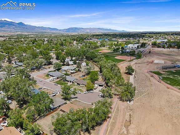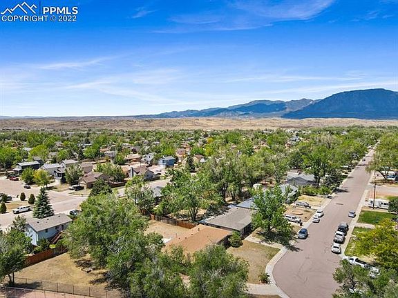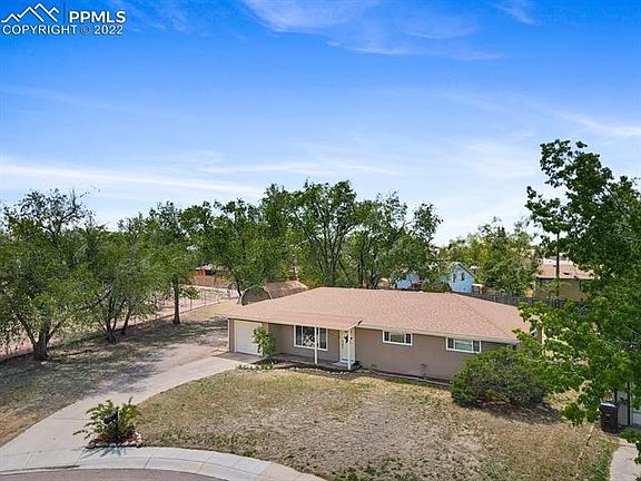 Lovely Updated Stucco Rancher (3bd/2ba) is Located at the End of the road, cul-de-sac. Great Location on an Oversized lot at .37acres (16.2Ksf) and Borders the Entrance to the Widefield Community Center Property including over a mile-long Walking/Running Trail. True Main level living with an Open floor plan and Freshly Refinished Hardwood Flooring throughout the Great Room, Hallway and Bedrooms. The kitchen was Professionally Designed, Dining Room Walks out to the Covered Patio, Garden Beds, and Views. Three Spacious Bedrooms, Nicely Updated Full Bathroom w/Linen Closet, Large tiled Mud Room with Laundry Closet, Access to the Garage and the Back Patio. The property offers endless possibilities. RV/Boat Storage, Build a garage, Add-on to the home The current Storage Shed could be converted into a Second Garage. And Bring your Chickens, theres a home for them too. Very Active Community Center with Sports, Library, Pool, Multiple Programs and Events for Families. New Furnace, Newer Roof, Replaced Sewer Line, Security System, Tile Flooring in Mud Room, Kitchen, and Both Bathrooms. 6-Panel Doors throughout, Vinyl Windows, and Two Window A/C's. Beautiful planted flowers along the walkway entrance to the home.