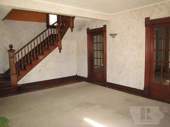 Lots of potential in this two story home with open staircase, French doors, original woodwork, claw foot tub and hardwood flooring. Nice detailing in open stairway. One downstairs room could easily be converted to an additional bedroom. Detached garage with workshop. Back part of roof will be repaired by contractor as soon as schedule allows. Lawn is Zoysia grass.