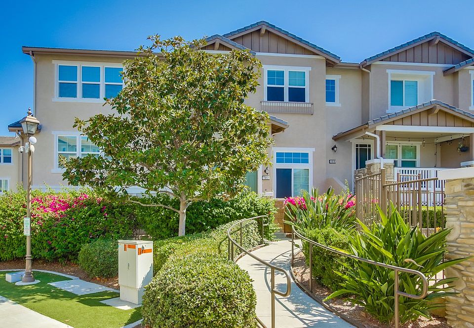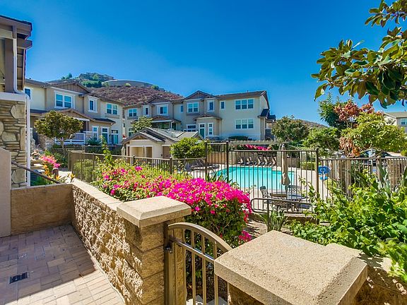 Beautiful split-level townhome in the gated Altair community. This home offers tall ceilings, abundant natural light, and a versatile layout with a living room, dining room, and family room that opens to the kitchen. Features include tile and laminate wood flooring, granite countertops, pre-wired sound, and a primary suite with walk-in closet and dual-sink vanity. The attached two-car garage provides plenty of storage, and the community offers a pool, spa, playground, and BBQ area. Conveniently located near the 67 and 52 freeways.