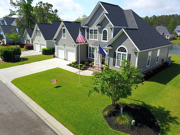 Attractive & exceptionally well maintained 4-year old, 3 bedroom (plus finished room over a two-car garage - that can serve as an additional bedroom/guest room), 2 1/2 bath home in a small Berkeley County subdivision, and quiet residential street, with access to a community owned deep water dock on the Wando River – ideal for fishing and crabbing. Room over garage also doubles as a bedroom/guestroom. Master bedroom with en suite (bathtub, shower, & double vanity), & walk-in closet on main floor. Open living and dining area with generous natural lighting throughout. Sunroom looks over a tranquil pond. Living room is a large open area with high ceiling and gas fireplace. Great eat-in kitchen with gas range, plenty of cabinets and counter space - an awesome gathering place. Island counter comfortably seats 4. Dedicated first floor laundry room. Living and dining rooms have hardwood floors, kitchen, sunroom, bathrooms and laundry have ceramic tile, and remaining areas are carpeted. Meticulously maintained yard and landscape with underground sprinkler system, outdoor patio space ideal for entertaining, and a hot tub. Beautiful sunsets can be enjoyed both from the sunroom and on the dock. Three brand new local schools - Philip Simmons Elementary, Middle, and High school – a short 8-minute drive! Close to the beaches and downtown Charleston. Both Charleston AFB and and Naval Weapons station are less than a 30 minute drive. Perfect for those who are looking to raise a family, or for a place to retire. Please TEXT, EMAIL, or stop by if you have questions or would like to see. SELLER will pay 3% to BUYER'S BROKER.