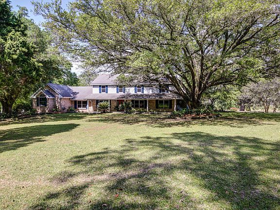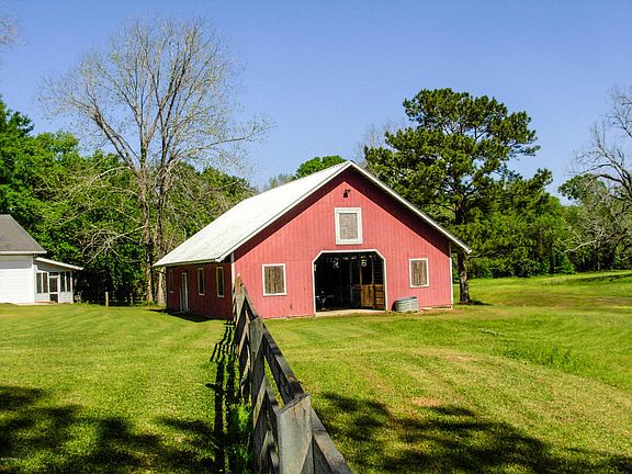 This is a remarkable country property some have described as a perfect movie setting! The spacious home is nestled on 14.46 acres of spectacular terrain- 3 registered Live Oaks, a stocked pond, a fenced swimming pool, a 7-stall red barn, a workshop with a 3-car garage, living quarters and greenhouse now used as craft area. The back pasture was once a riding arena and is complete with water, electricity, and sand base under the grass. The home has been remodeled and expanded to provide spaces for all plus 3-car garage with A/C. Included are a charming master suite, a game room, a two-story foyer with balcony overlook, a covered raised patio deck and porches 8 feet wide that wrap the structure. There are fruit trees, a veggie garden area, mature landscaping, and split-rail fencing. This picturesque haven is a once-in-a-lifetime opportunity to enjoy country living with nearby conveniences! Kitchen refrigerator, pool equipment & storage box, water softener & iron filter to remain. Seller may consider owner financing with a substantial down payment.