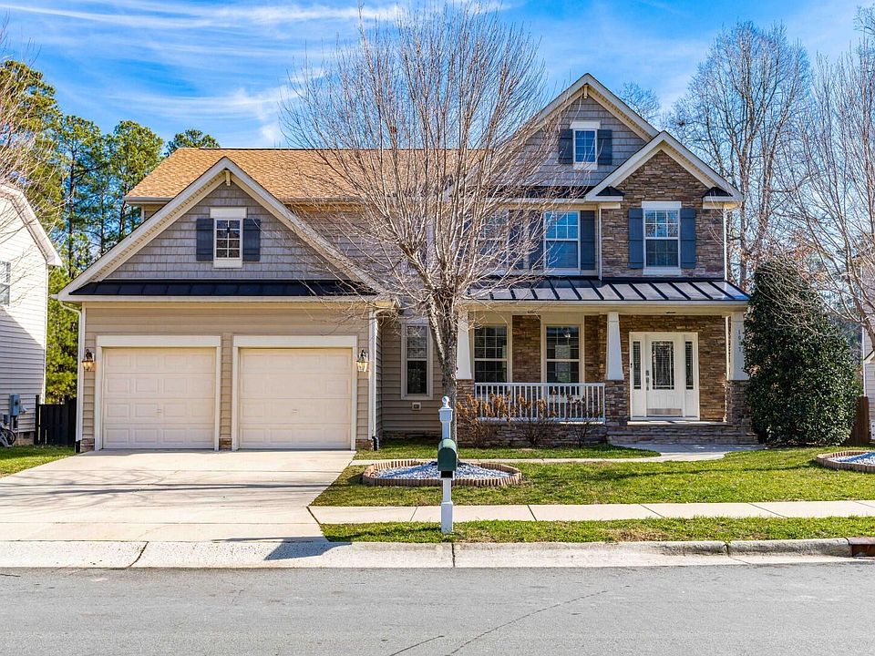 Don't miss out on calling this gorgeous home yours! This beautiful home hosts an open and airy floor plan with tons of natural light. Enjoy your morning coffee on your screened in porch overlooking the fenced in back yard and the natural beauty of the tree line behind. This home offers convenience and versatility with a guest bedroom and full bath downstairs. The spacious kitchen with a large island and granite countertops and lots of storage just off the inviting great room with built-in bookcases around the cozy fireplace make it the perfect place for entertaining and socializing with friends and family. Four bedrooms upstairs with a loft area and a master suite that is bright and inviting complete the picture to make this home a must see! New paint and carpet throughout with hardwoods downstairs. Neighborhood ammenities include a pool and playground and is convenient to shopping, RTP, good schools and hospitals. video: https://raleighrep.com/1017lakeview