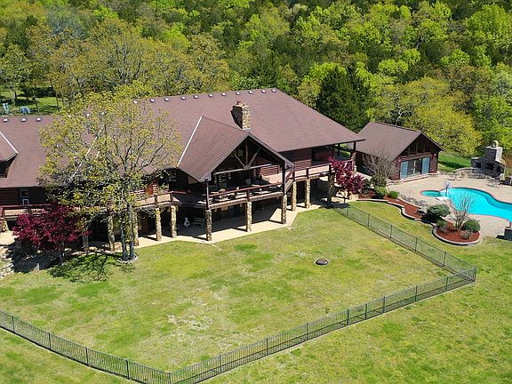 Missouri Ozarks Table Rock Lake is known for rolling mountains and a relaxed elegance with a temperate climate. This pristine lake has great fishing and recreation and attracts many that once considered other Midwest and southern lake options. Branson West is located 30 minutes south of Springfield, Missouri with two convenient airports plus a private jetport located locally! This property is a private lakefront estate on 30.4 Acres M/L with two boat slips and Private Lake! The home was built for recreation and ultimate privacy by a professional athlete with a love for the beauty of the Missouri Ozarks, boating, and fishing. Gated entrance, security system, expansive views with large porches, and plenty of room for family and friends; this Branson West property has it all. The fully furnished home, though large, feels warm and inviting. You can enjoy Table Rock Lake, sit on your porch and enjoy the expansive views, fish Table Rock Lake or your own private lake! The outdoor recreation area features a pool with outdoor fireplace and pool house, with half bath, sleeping quarters and a full kitchen. The living space is flexible and hosts 7 bedrooms and 4 full baths and 2 half baths. There are two master suites; one on each level. The main level has 3 bedrooms (including the master suite), 2.5 bathrooms, covered porches with hot tub, dining room, breakfast room, kitchen, laundry and 3-car garage. The lower level is all about recreation, and guest space with game room, card room, exercise room with steam sauna, full kitchen, dining room, 3 bedrooms (including a second master suite), 2 bathrooms, workshop, garage space, and covered and uncovered porches. There is one bedroom/office space on the second floor that overlooks the lake and is very private from the rest of the home. To further the recreation space, there are trails through the woods, lake frontage, and a private stocked lake! There is a shop adjacent to the private lake to store more hobbies and lake toys. This Private Oasis on Table Rock Lake was built for LIVING and LOVING LIFE! Branson, Missouri is located in Southern Missouri, on Table Rock Lake. This area is just 30 minutes south of Springfield, Missouri. Area attractions are Johnny Morris' Top of the Rock, Big Cedar Resort and Spa, Buffalo Ridge Golf Course, and Tiger Wood's new Payne's Valley Golf Course, named after Missouri's own Payne Stewart. This property is a perfect family home or could be a corporate retreat. Additional land is available.