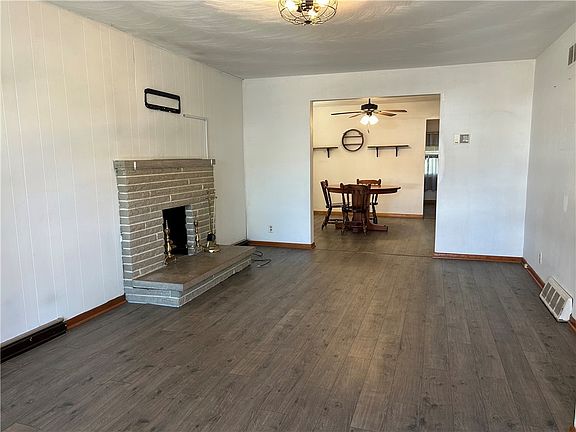 Welcome to this super cute ranch in the heart of Natrona Heights! Inviting covered front porch. Huge living room with double coat closet, decorative fireplace and industrial shelving. Separate dining room with large window allows nice natural light. One bedroom has a closet with built-in drawers and separate shelves. Full bath with linen closet and shower/tub. Primary bedroom on main level. Kitchen includes stove and extra counter space for your coffee bar. Three steps down to access the covered back porch and flat yard for entertaining. Basement has gameroom space for the mancave or play room, laundry room, additional storage room. Integral garage. Brand new roof May 2025. Close to Freeport Road, restaurants and schools.