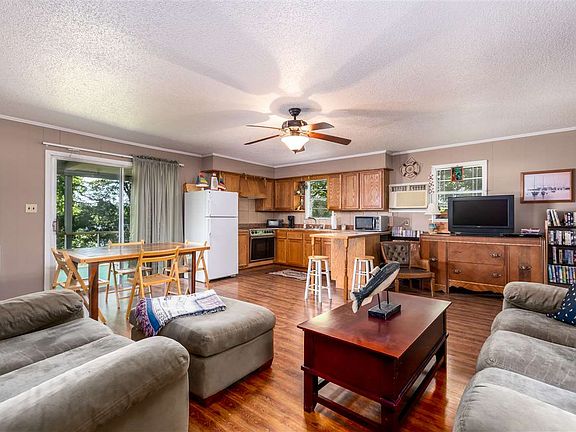 Waterfront Fishing Cabin!! Rustic and Casual, this cabin is fully furnished! You will LOVE the huge 36x12 screened in porch with water views galore!! Open kitchen, living, dining area w/breakfast bar. Master on main floor w/bath. Downstairs is one large bunk room/bedroom w/ tiled shower/separate tub bath. Out the downstairs is a covered patio/porch where owner keeps the bass boat which is included with purchase!! The large water front lot has beautiful mature shade trees and a gentle slope to the water! Located at Lost Creek and near the boats store and marina. Don't wait on this one!!
