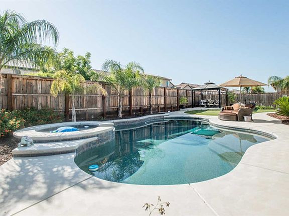 Stunning 4 Bedroom 4 Bathroom Benchmark home in Clovis. Like new, this home is situated on a larger lot with many upgrades. Kitchen features granite counter tops, stainless steel appliances, 5 burner gas stove top, Whirlpool exhaust hood and subway tiled backsplash. LED lighting throughout home. Master suite is oversized with plenty of closet space, master bathroom includes granite countertops oversized tub and fully enclosed shower. When you walk outside be prepared to be blown away with your pebble-tec pool and built in spa, step away and putt a few holes on your very own putting green. Outdoor gazebo and sitting area overlooking pool. Patio has ceiling fans. Additional concrete for shed on side of home makes it easy to stay organized. This home has solar along with water free landscape for both front and backyards. Please don't miss this home, you will not be disappointed.