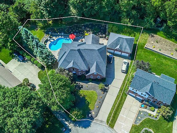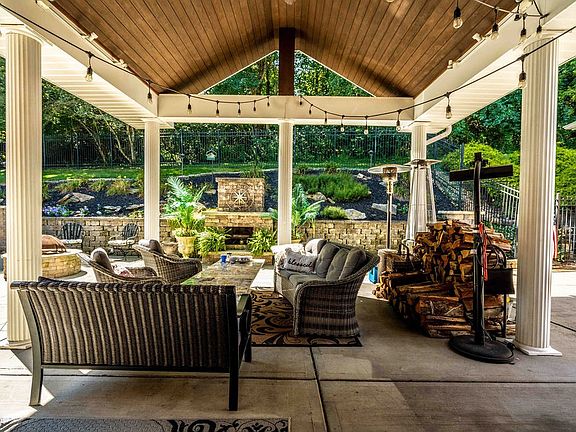 It's open season for Better Living! Have your own pool, gym, outdoor fireplace, firepit, theater room, pool room, office. Unbelievable kitchen opens to great room, formal dining room, library. Second floor has master bedroom with fabulous ensuite bath, 2 additional bedrooms with jack & jill bath, and 4th bedroom . There are two HVAC systems. Includes a two car attached garage and 3 car detached garage with room for an in-law suite above garage. Detached garage has water, gas, electric and sewage.