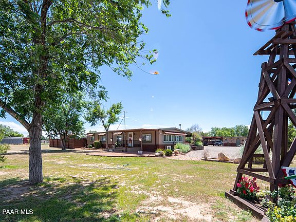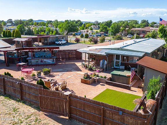 Welcome to your dream oasis in Chino Valley, AZ! This charming 1973 manufactured home sits on a spacious 1.07-acre lot, offering a serene ranch-style living experience. Fully updated and remodeled, this home boasts 3 bedrooms and 2 bathrooms, ensuring comfort for you and your loved ones. Stay cool in the summer and cozy in the winter with the modern mini splits installed throughout. Step into your private fenced-in yard, complete with an inviting entertaining bar, a fire pit perfect for gatherings, and a luxurious hot tub for ultimate relaxation. Additionally, you'll find a 32' by 10' workshop and a 20' by 12' garage, providing ample space for all your hobbies and storage needs. Don't miss out on this unique opportunity to own your own slice of paradise in Chino Valley.