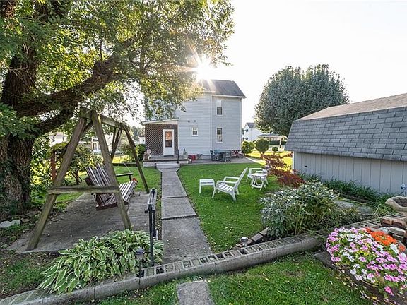 Located on a corner lot, this home has 3 bedrooms and 2 full baths. The backyard has feeling of serenity with the shade trees, swing, concrete patio, concord grape arbor, 12x12 shed, and an 6x8 screened porch. The upper level has a sewing room that could be used as an office and a 7x10 storage closet. A majority of the attic has insulated flooring. Gas fireplace located in living room surrounded by brick and a Wormy Chestnut mantel. The basement is complete with washer/ dryer and lots of shelving.