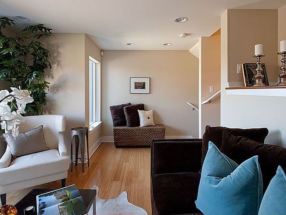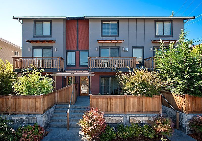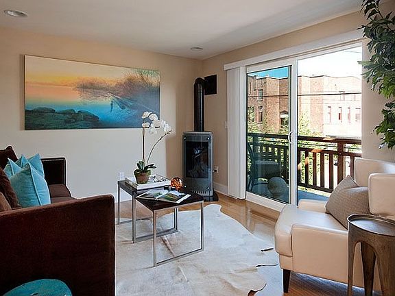 Elegant, sunny, wonderfully located Fremont townhome with 94 walk, 64 transit and 85 bike scores. Cool modern finishes and fixtures. Three bedrooms and two-and-a-half-baths. Each bedroom is on its own level and two of them have en-suite full baths. Gas heat, stove, and stylish Scandinavian-style fireplace. Western facing deck off of living room and patio on lower level for enjoying these lovely summer days, and a little place for you to plant yourself an urban garden.