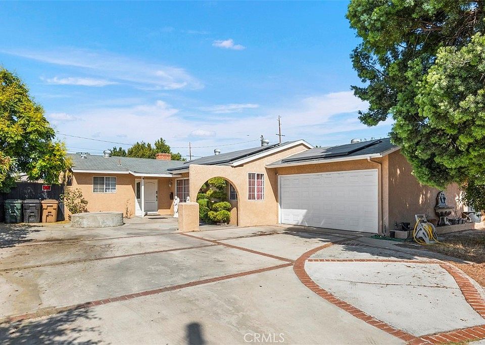 Best Priced 4 bedroom Single Family Home in Anaheim! Don't miss this opportunity! Single story 4 bedroom, 2 bath home in a lovely area of Anaheim. Solar panels with a lease under $100 a month - with an excellent air-conditioner. Kitchen with granite counter tops and stainless steel appliances. Open living space. The living room has a fireplace with marble surrounds and a hearth. Huge driveway with plenty of parking and a 2 car attached garage. Separate pantry and laundry area. Covered patio and a shed.