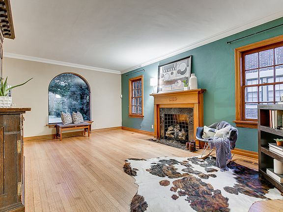 Tudor Revival with thoughtful renovation. Distinct architectural features include the large front porch with circular opening and lovely arched picture window. Large formal living and dining rooms with stained wood windows providing plenty of natural light. Gorgeous refinished hardwood floors. The kitchen was renovated in vintage form with white cabinetry, stone countertops and black and white tile flooring. Large family room open to kitchen has fireplace and walls of windows with clear view of the landscaped backyard. Master bedroom down with well proportioned master closet and bath with shower. Two additional downstairs bedrooms and full bath on main floor plus powder bath. Second floor features a wonderful office, playroom or reading room with recent carpet and full size washer and dryer laundry nook. Electronic gate on drive provides access to garage and parking. Very private backyard with ample sized patio space. This home has much to offer with all of its well designed space!
