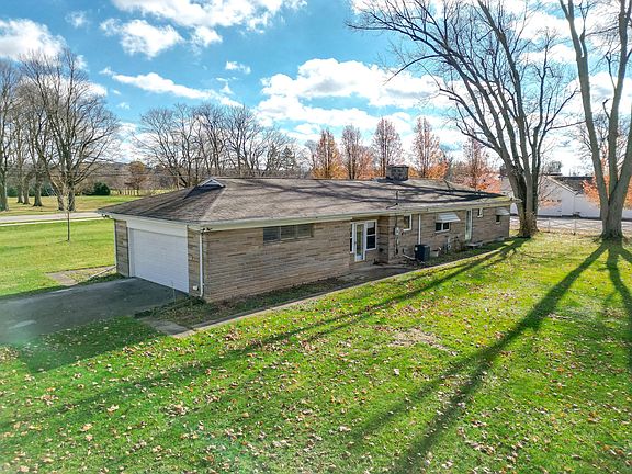 Rare opportunity to buy a classic 50's built ranch on the southside of Mount Vernon. This unique and easy maintenance stone ranch sits on a full 1/2 acre corner lot. The proximity to M.V. City Schools and the MVNU makes it a great location for students and faculty. A spacious 1830 sq foot, 2 bedroom, 1 bath home boasts a HUGE updated kitchen with cute eat-in area, washer/dryer hookup, large pantry & gas range. The dining room blends into a huge 24'x12' family room with stone fireplace. Beautiful oak hardwood floors in the family room, bedrooms and halls. Neat build-ins & tons of storage space. 4 season room, 2.5 car garage. Furnace, central air unit & yard shed all new in '22. Basement has a 2nd fireplace, range, sink, 2nd laundry hookup & workshop. Don't miss out on this classic beauty!