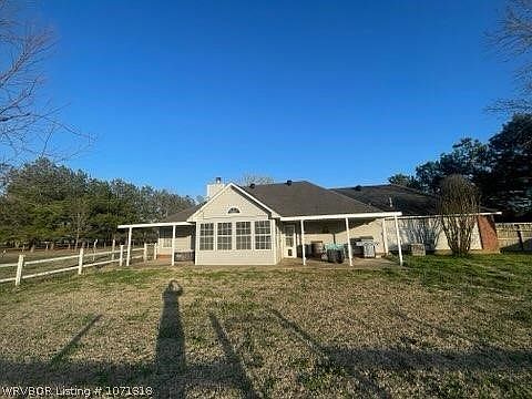 Welcome to your dream oasis nestled on 3 picturesque acres in the charming community of Greenwood! This stunning 3 bedroom, 2 bathroom home boasts an inviting open floor plan, perfect for both entertaining and comfortable living. Step inside to discover freshly painted vaulted ceilings, complemented by new light fixtures and ceiling fans throughout, creating a bright and airy atmosphere. The heart of the home is the spacious kitchen, featuring ample counter and cabinet space, a large pantry cabinet, and luxury vinyl flooring for easy maintenance. Adjacent to the kitchen is a convenient laundry room and office area, providing practicality and functionality. Relax and unwind in the cozy living room, complete with a new gas fireplace, ideal for chilly evenings. Retreat to the tranquil sunroom, adorned with beautiful tongue and groove detailing, offering a peaceful sanctuary to enjoy your morning coffee or evening breeze. Outdoor enthusiasts will delight in the fenced backyard, showcasing two covered patios, perfect for alfresco dining or lounging, while overlooking the lush greenery and serene catfish pond. For the hobbyist or DIY enthusiast, a generous 12x23ft workshop/storage building and an oversized 2-car garage with a workbench provide ample space for projects and storage. Experience the convenience of country living with the proximity of urban amenities, as this home is located just outside city limits yet only 3 minutes away from the local Wal-Mart and less than 8 minutes from downtown Greenwood. Additionally, the property features a full home water filtration system and a 30x50 slab ready for future expansion, offering endless possibilities of customization and growth. Don't miss the opportunity to make this extraordinary property your forever home. Schedule your showing today and experience the best of both worlds - tranquility and convenience in one exceptional package!