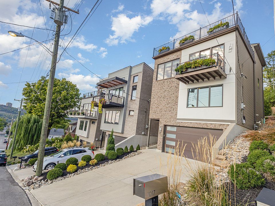 Discover a stunning custom built modern home that boast unparalleled panoramic view of Downtown Cinti. Level 1 provides a charming guest suite, 2 car garage, & utility room, Take a ride on your private elevator to Level 2 where you'll find the expansive primary suite adorned with hardwood floors.The attached primary bath is a luxurious retreat.This level also includes a 2nd bdrm, a full bath, & a conveniently located laundry rm. Level 3,the spacious layout opens up to a gourmet Kitchen equipped w/a large island, perfect for meal preps& entertaining, along w/stainless steel appliances. The adjoining family rm showcases a unique fireplace and phantom screens, ensuring your breathtaking views remain unobstructed.Level 4 is the ultimate entertainment hub, complete w/wet bar,dishwasher,ice maker&wine/beverage fridge.Step out to your rooftop deck, features gas hookup,making it ideal space for gatherings..Irrigation system installed for effortless plant maintenance. Pella casement window.This home showcases meticulous attention to detail offering a perfect blend of luxury & comfort! Experience elevated living at Pottebaum Pointe