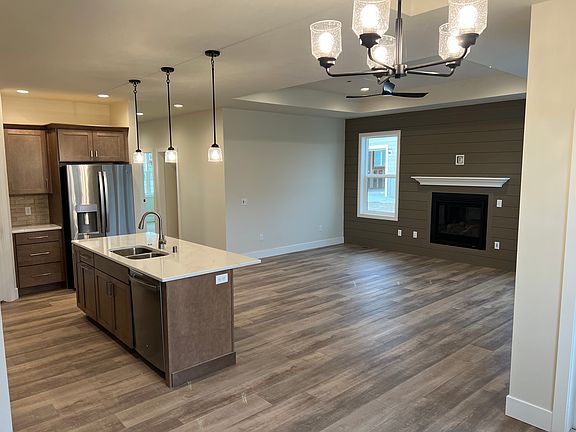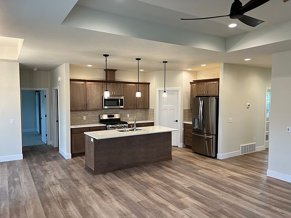 A new, one level home in Brynn Way Homes. The kitchen opens to the living room and dining space which walks out to a partially covered patio. Kitchen with gas stove, quartz countertop, island, and large walk-in pantry. Master bedroom with trayed ceiling, double vanity, tile decorative tile shower, and large walk-in closet. 2-car garage with bonus space for work benches and/or added storage. Navian on demand hot water heater and a Rheem 95% efficient Constant Torque furnace. Complete with landscaping.Lawn Maintenance (mowing/fertilizing), snow removal and exterior insurance part of HOA monthly dues of $200/mo.